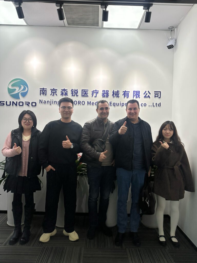 Welcome Algerian customers to SUNORO,During the showroom tour, the client reviewed a range ofproducts including hospital beds, instrument trolleys, and equipment pendants, gaining a deeper understanding of product structure, functionality, and quality.After the visit, both parties met in the office…