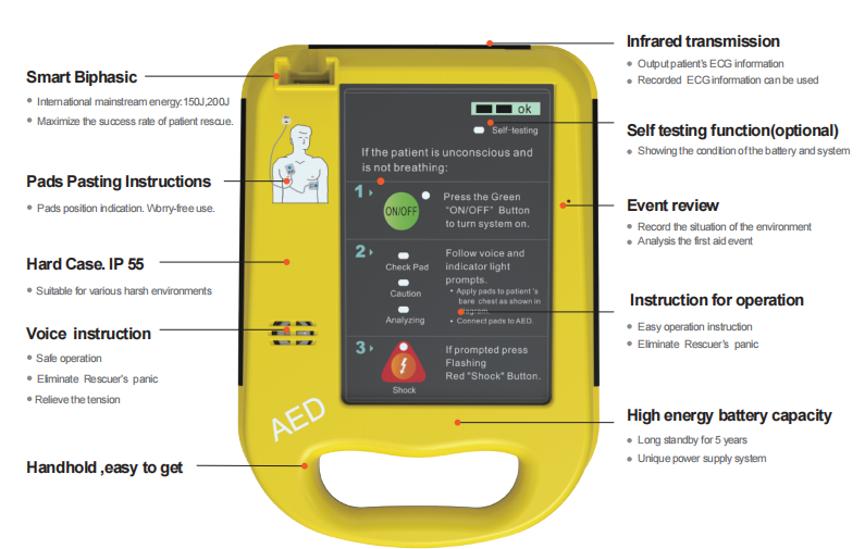 Portable Public First Aid AED automated external defibrillator
