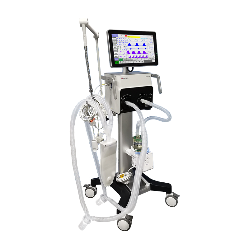 15.6 “TFT touch screen (18.5” optional, the sereen supports360 degree rotation left and right.Both invasive and non-invasive modes make the nit wideapplications.Integrated self-check system with leak check and systemtightness to secure the ventilationAutomatic leakage compensation by the unit provides is givingto optimmize respirator settings.Two Lithium batteries guarantee the unit usage up to 6 hours.Manual settable Inspiratory pause from 0.1-6seconds.AMV mode can minimize the work of breathing under thetarget minute ventilation.